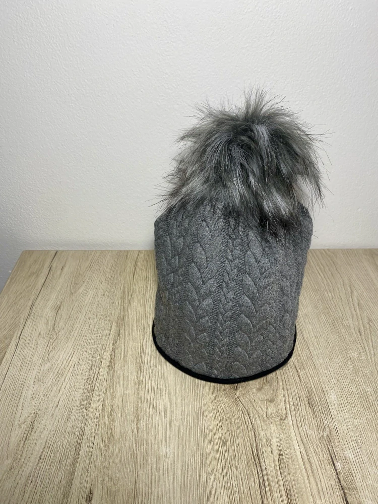 - Čepice s bambulí vel.50 tmavě šedá