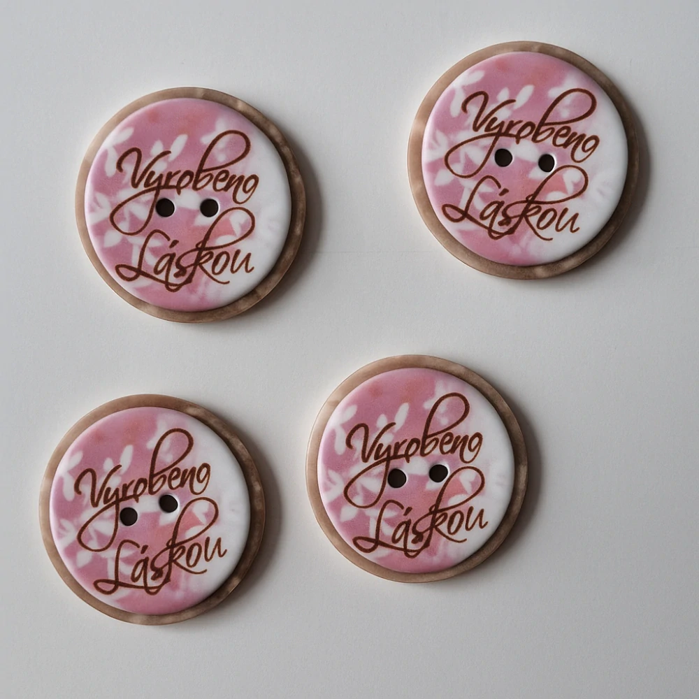 Knoflík Vyrobeno s láskou 25mmSkladem 25 ks6 Kč/ ks5 Kč bez DPH