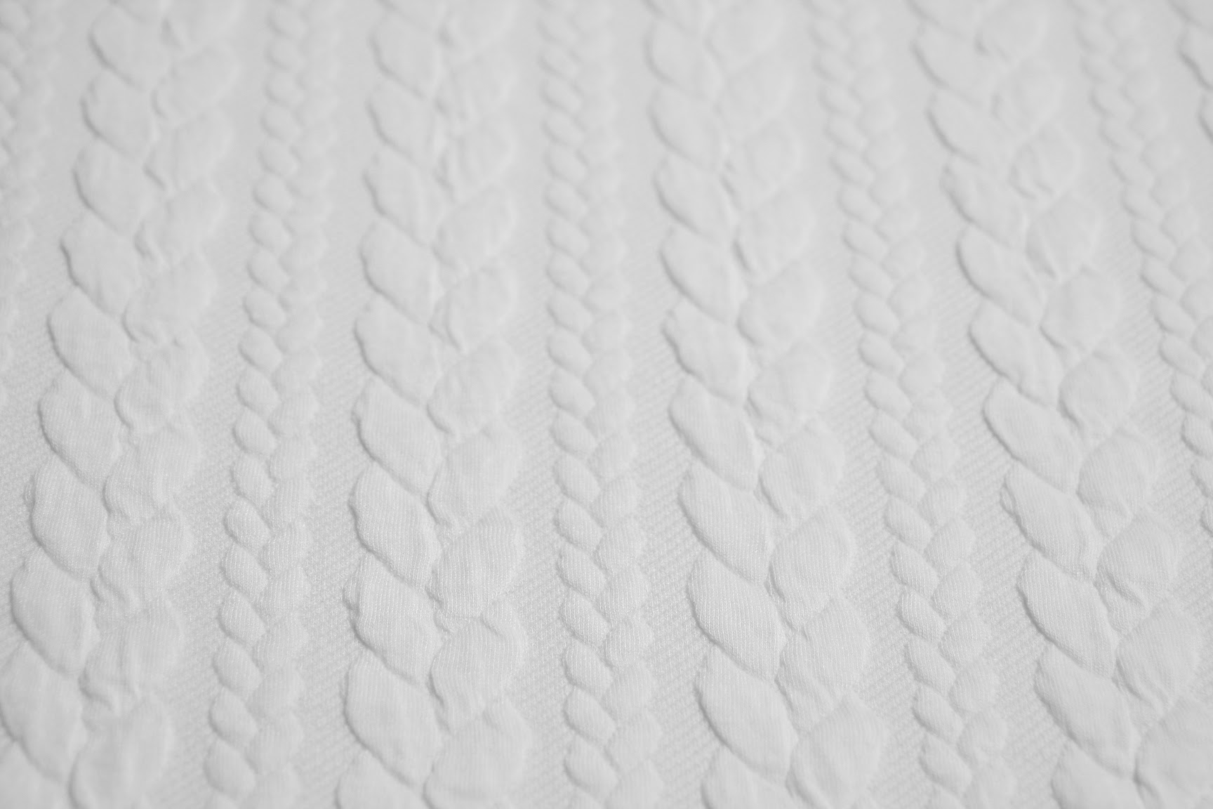 Pletenina je měkká a pružná. Má dvojitou vrstvu, kde lícová strana je jemná a vysoce příjemná na omak a je nejblíže teplákovině. Nadčasový design ve formě pletených copánků vytváří na povrchu plastický efekt.