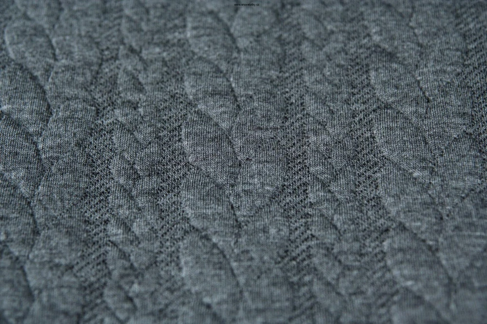 Pletenina je měkká a pružná. Má dvojitou vrstvu, kde lícová strana je jemná a vysoce příjemná na omak a je nejblíže teplákovině. Nadčasový design ve formě pletených copánků vytváří na povrchu plastický efekt.