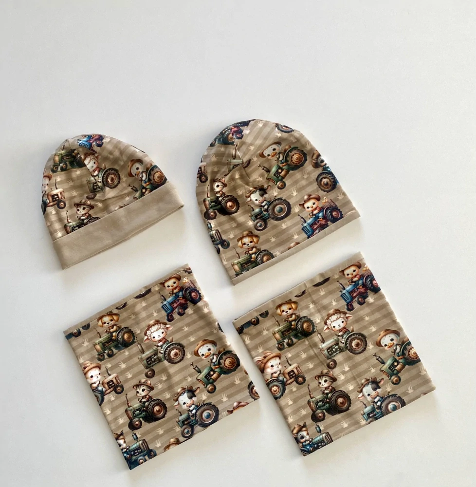 - Set čepice a nákrčníku zvířátka na farmě v traktoru, vel 46