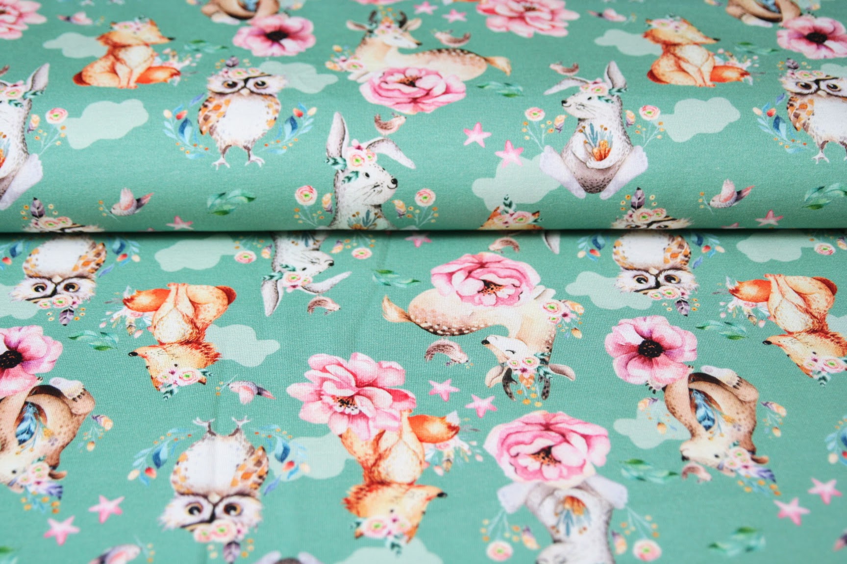 Teplákovina lištička s koloužky na jungle greenSkladem 4.5 bm308 Kč/ bm255 Kč bez DPH