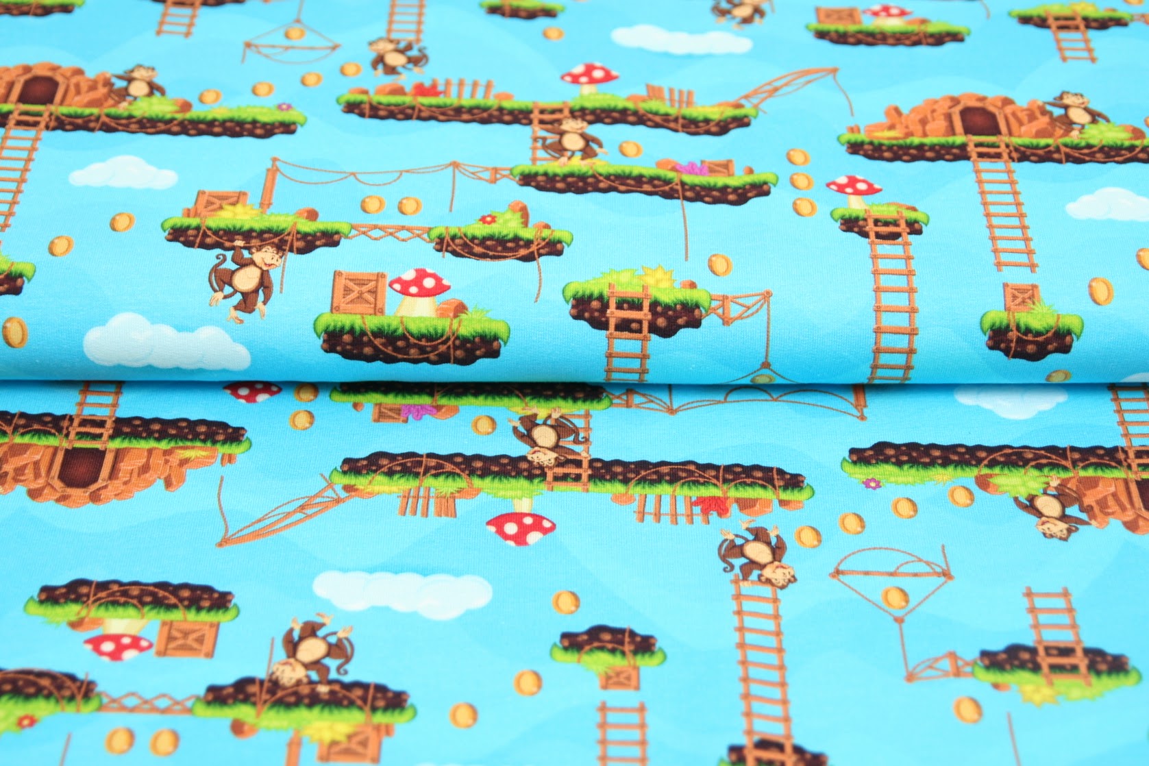 Teplákovina počesaná digi hra s opičkouSkladem 1 bm260 Kč/ bm215 Kč bez DPH