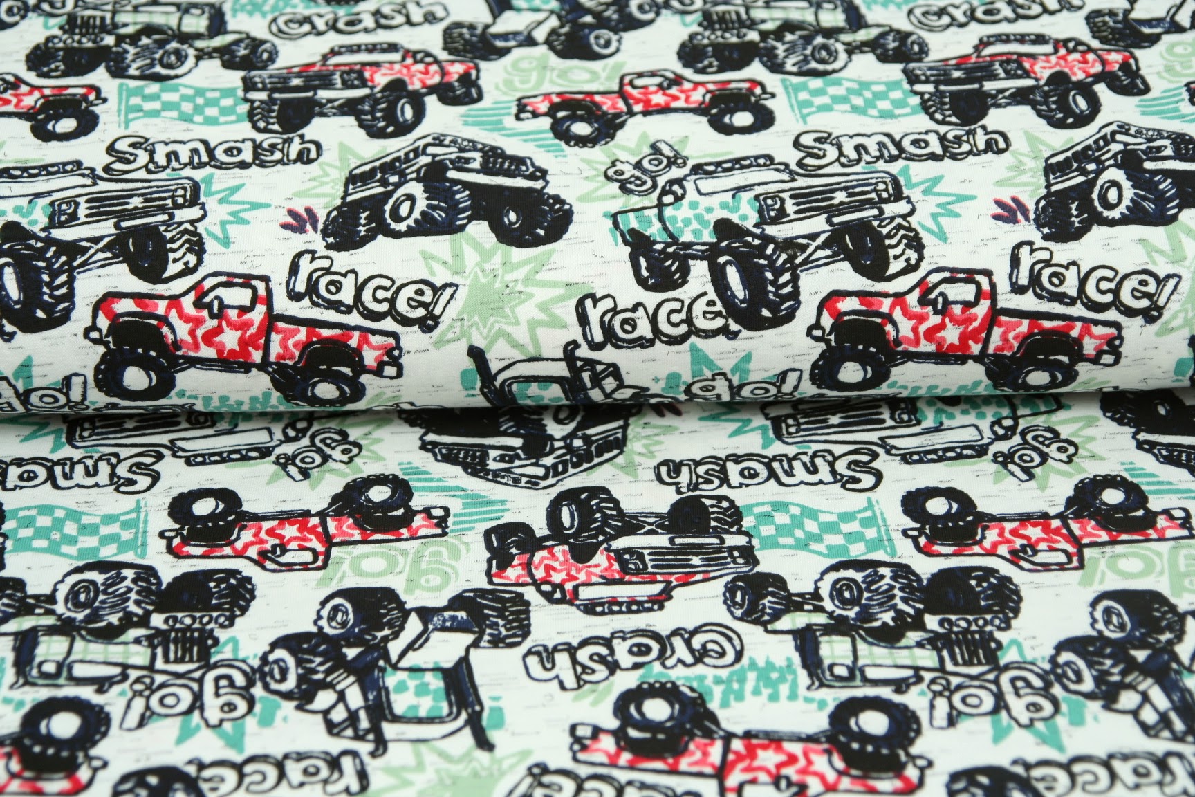 Úplet červený truck na melé ekruSkladem 5.2 bm240 Kč/ bm198 Kč bez DPH