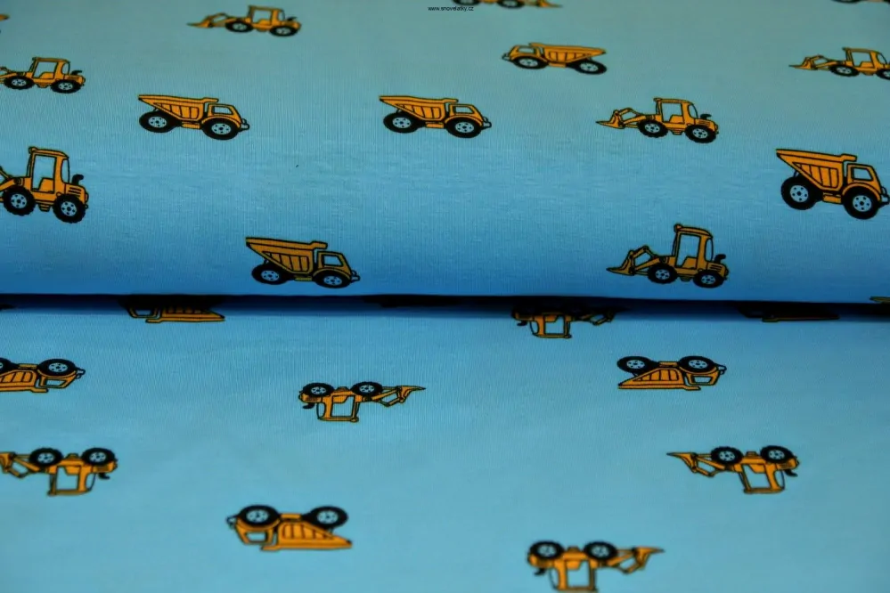 Úplet klučičí vzor žlutý nákladní auto na modréSkladem 10.2 bm210 Kč/ bm174 Kč bez DPH